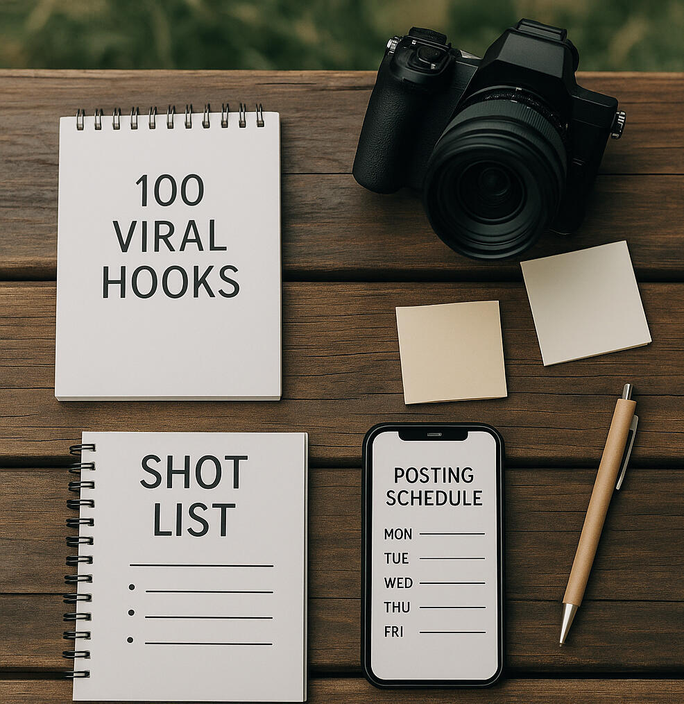 Monthly rollout where we provide scripts, shot lists, sales funnel psychology, hook triggers, and editing instructions. Social media marketing agency in a box.